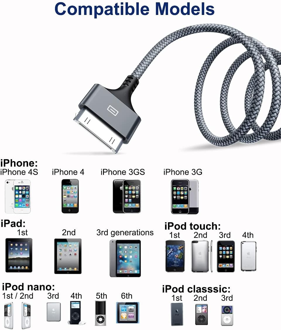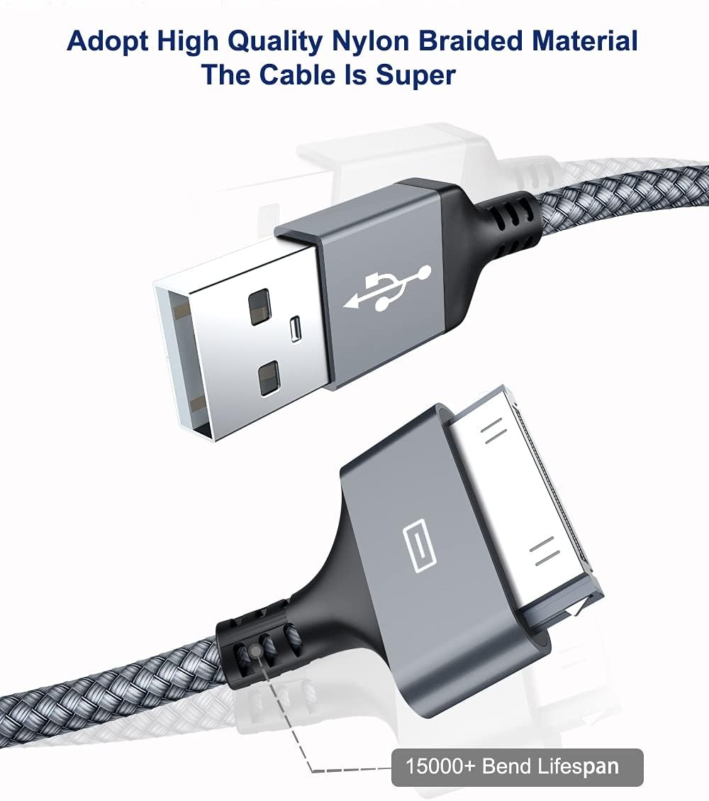 Apple 認(rèn)證 30 針 USB 充電線,USB 同步充電線兼容 iPhone 4 4s、iPhone 3G 3GS、iPad 1 2 3 iPod Touch 4 3 2 1、iPod Classic 3 2 1
