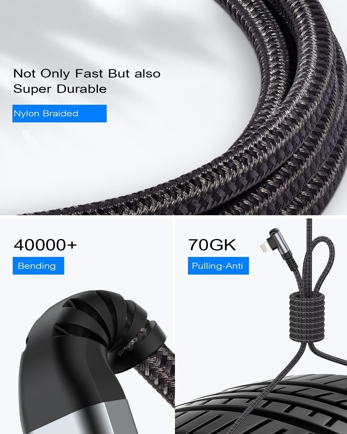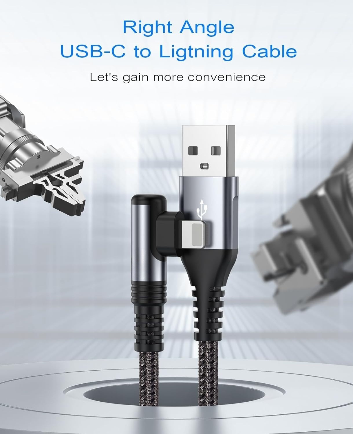 90度Ligtning接口充電線,速率為5V/2.4A,可以實現(xiàn)快速充電,數(shù)據(jù)傳輸速度可以達到480Mbps。