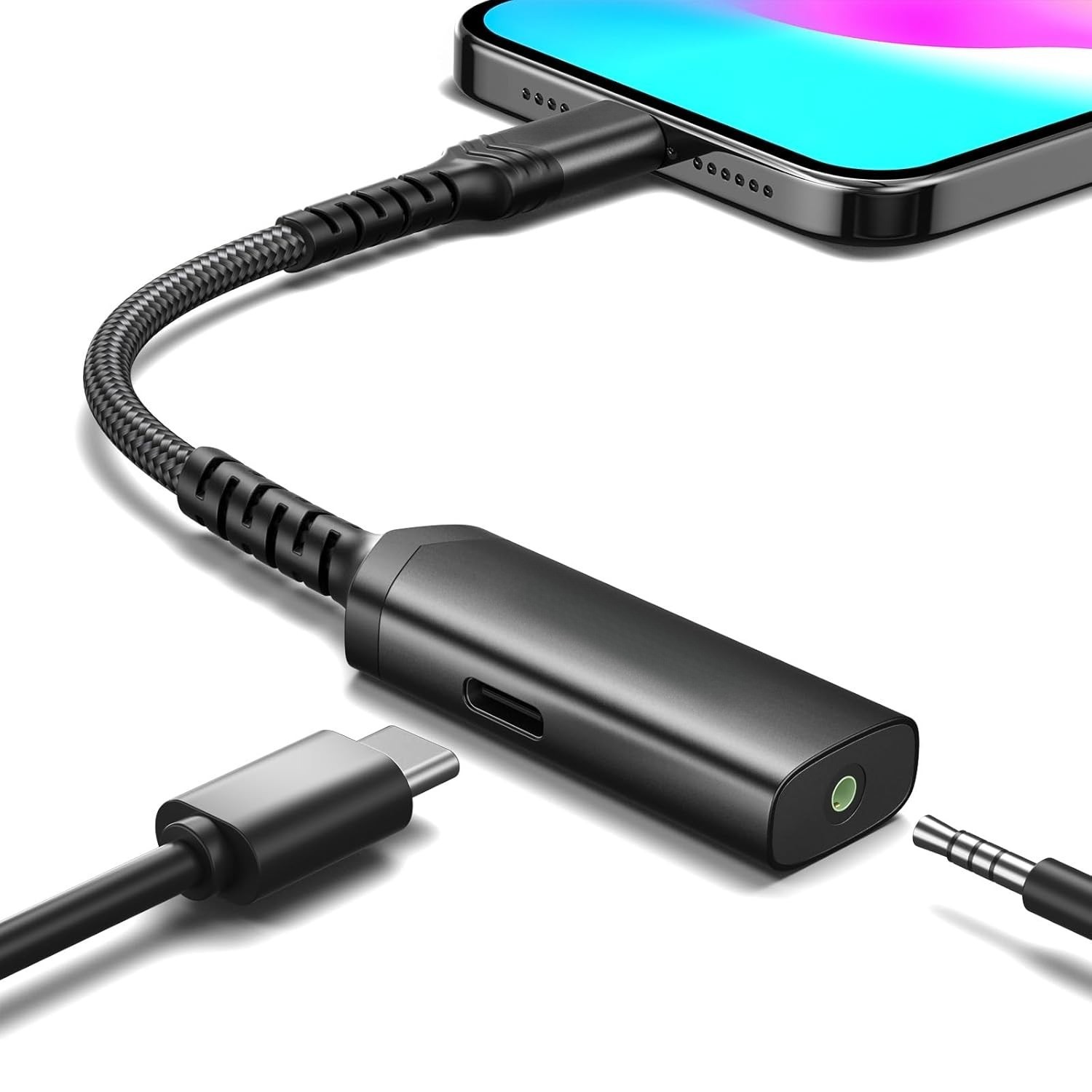 帶PD 60W的2合1 USB型至輔助插孔轉(zhuǎn)換器電纜,將 USB C 分割成 PD 兼容端口和 3.5 毫米插孔,在快速充電的同時(shí)允許音樂(lè)、游戲、通話和視頻。