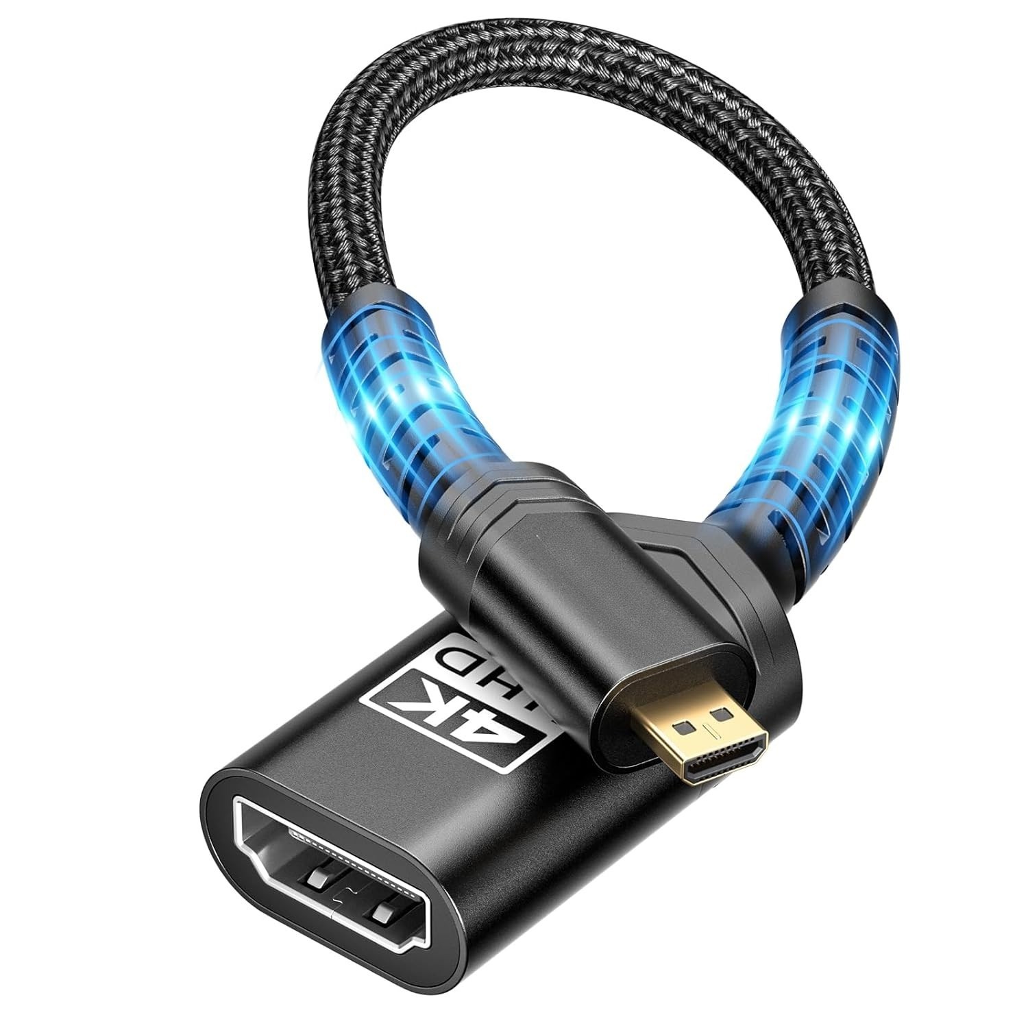 Micro HDMI Male to HDMI Female Adapter Cable, 4K@60Hz HDR 3D 18Gbps