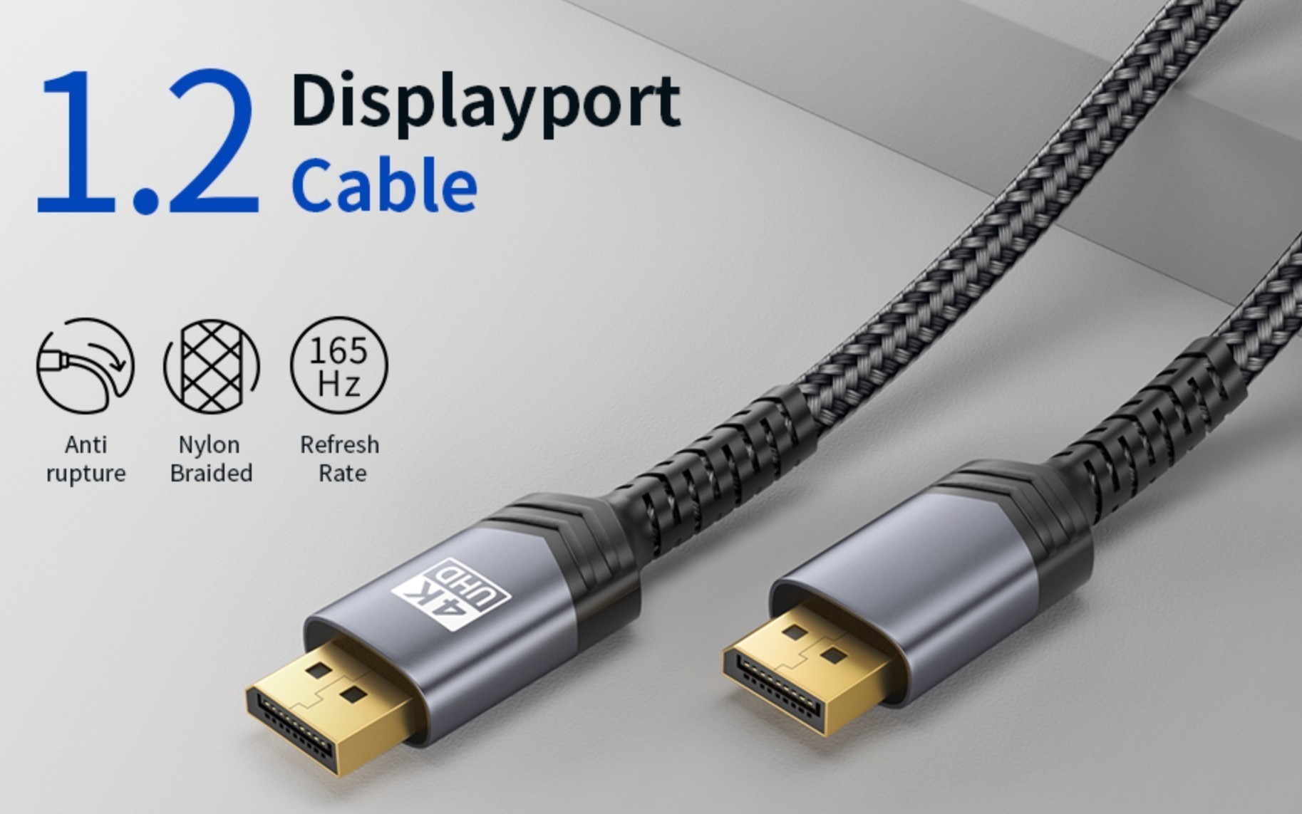 DisplayPort 1.2 Cable is good for 4K UHD video streaming or gaming with 1080p@165Hz/144Hz refresh rate reduces flicker to give you a really comfortable gaming experience and it also supports DP, DP++, and DisplayPort++.