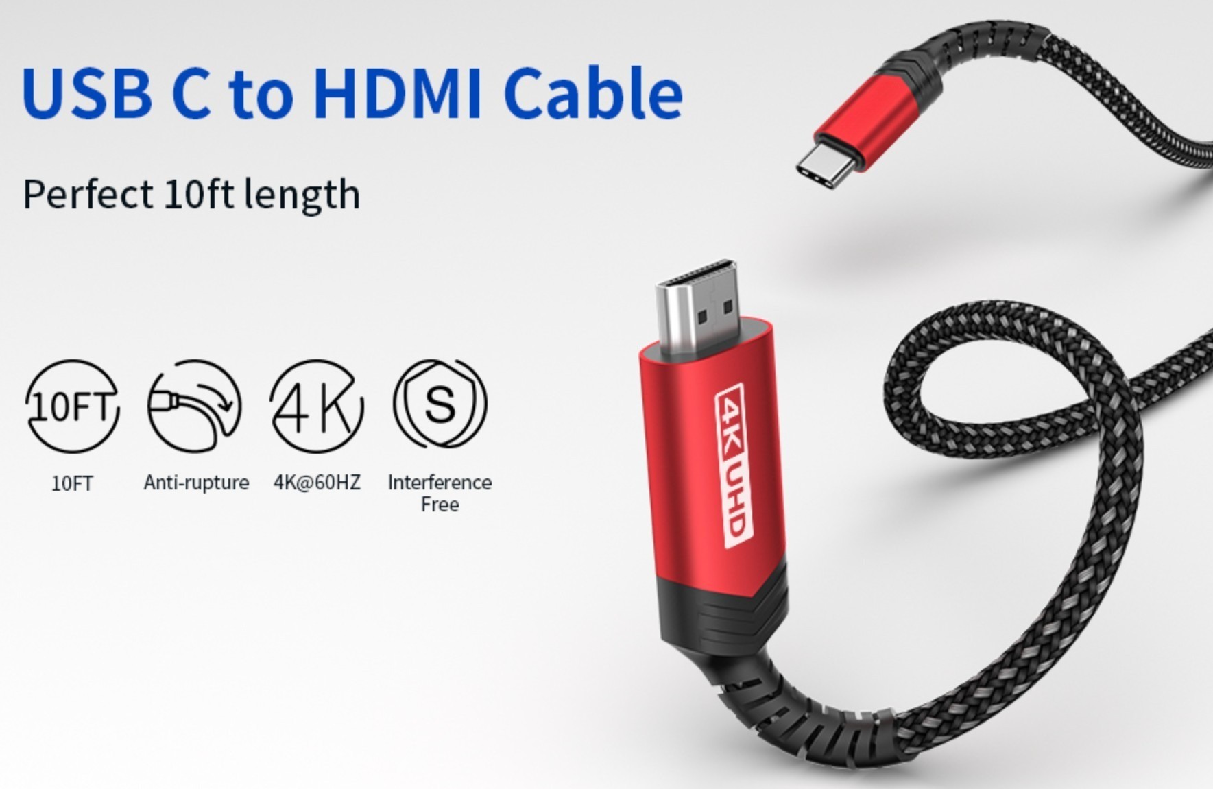 Superior Design:This USBC to HDMI cable has triple tin shielded in a double braided premium nylon with galvanized corrosion resistant connectors for guaranteed top tier image & sound.