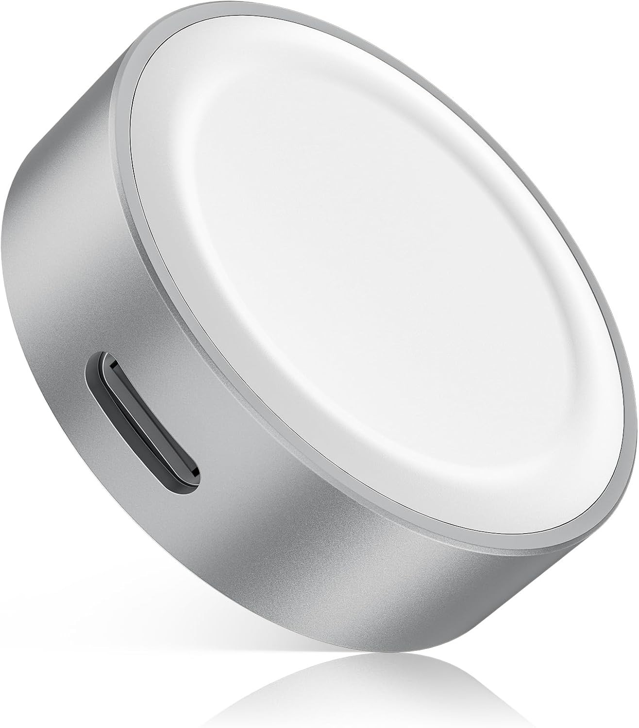 Sleek & Durable Design: Featuring a sleek, round design and crafted from premium aluminum alloy, this charger not only looks stylish but also offers exceptional durability. Its robust construction ensures long-lasting use, making it a reliable companion for your Apple Watch.