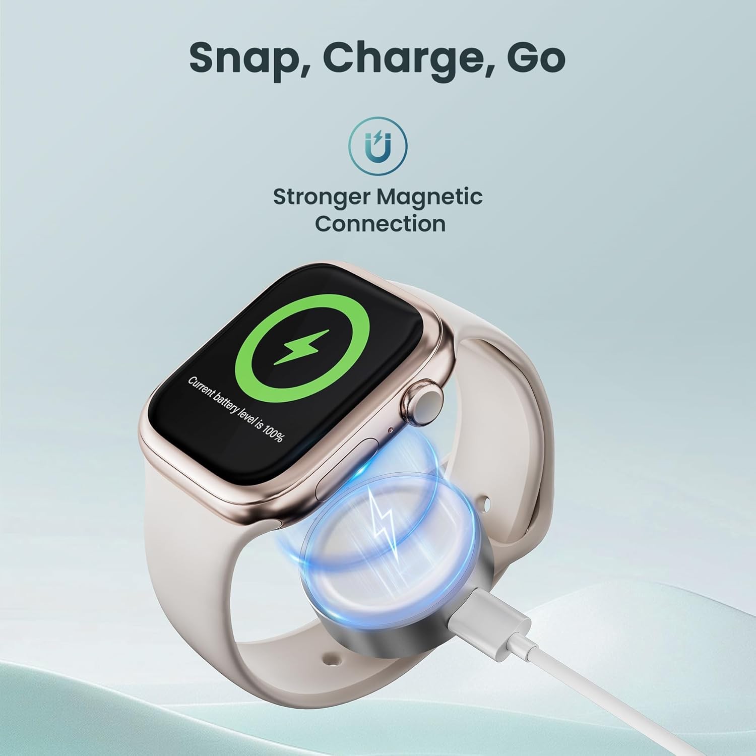 Efficient & Secure Charging: The reinforced magnet ensures your Apple Watch stays securely in place while charging. With advanced chips built-in, it ensures both safety and efficiency. Just snap your watch onto the charger, and the magnet will hold it firmly for a smooth, reliable, and safe charging experience.