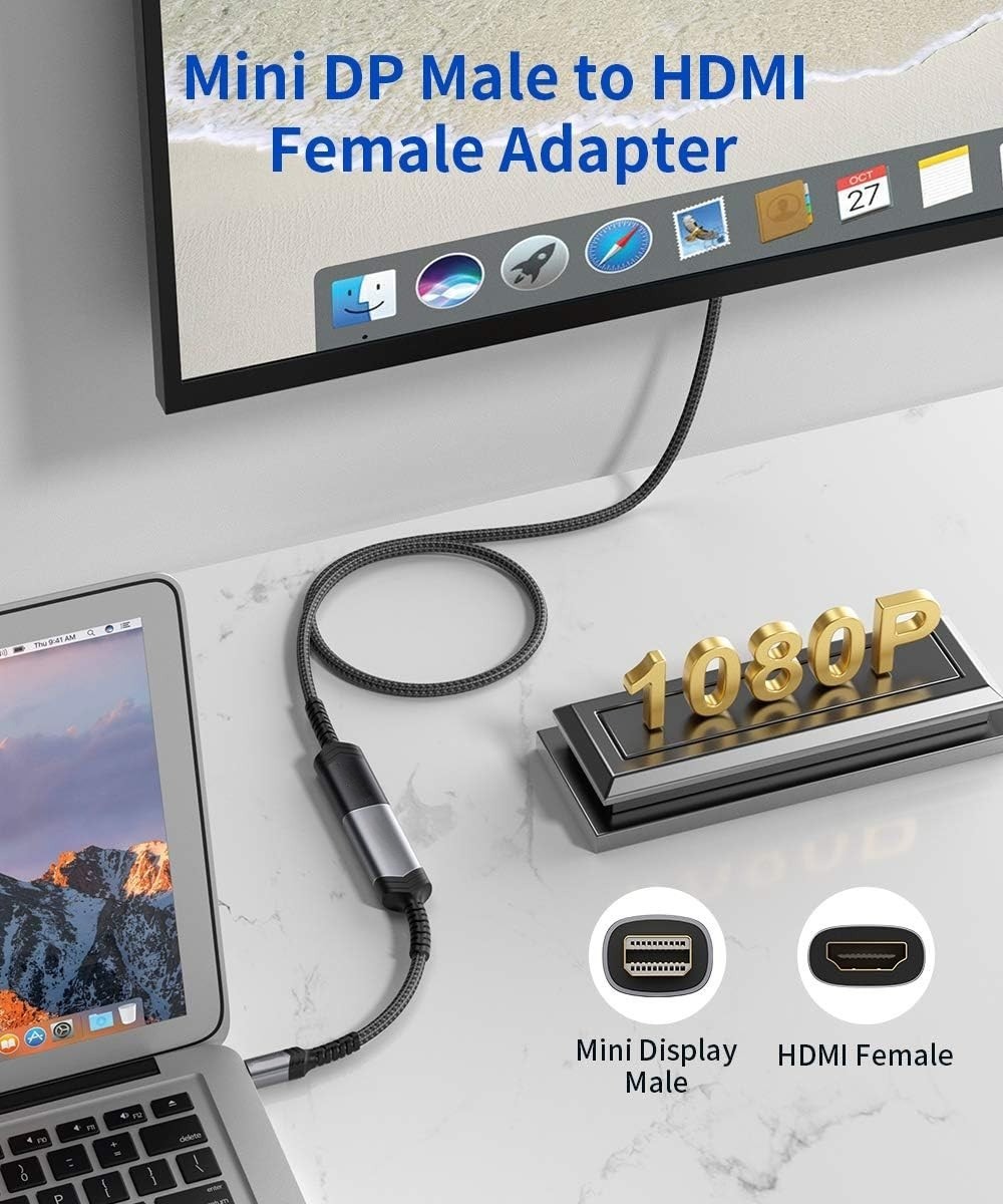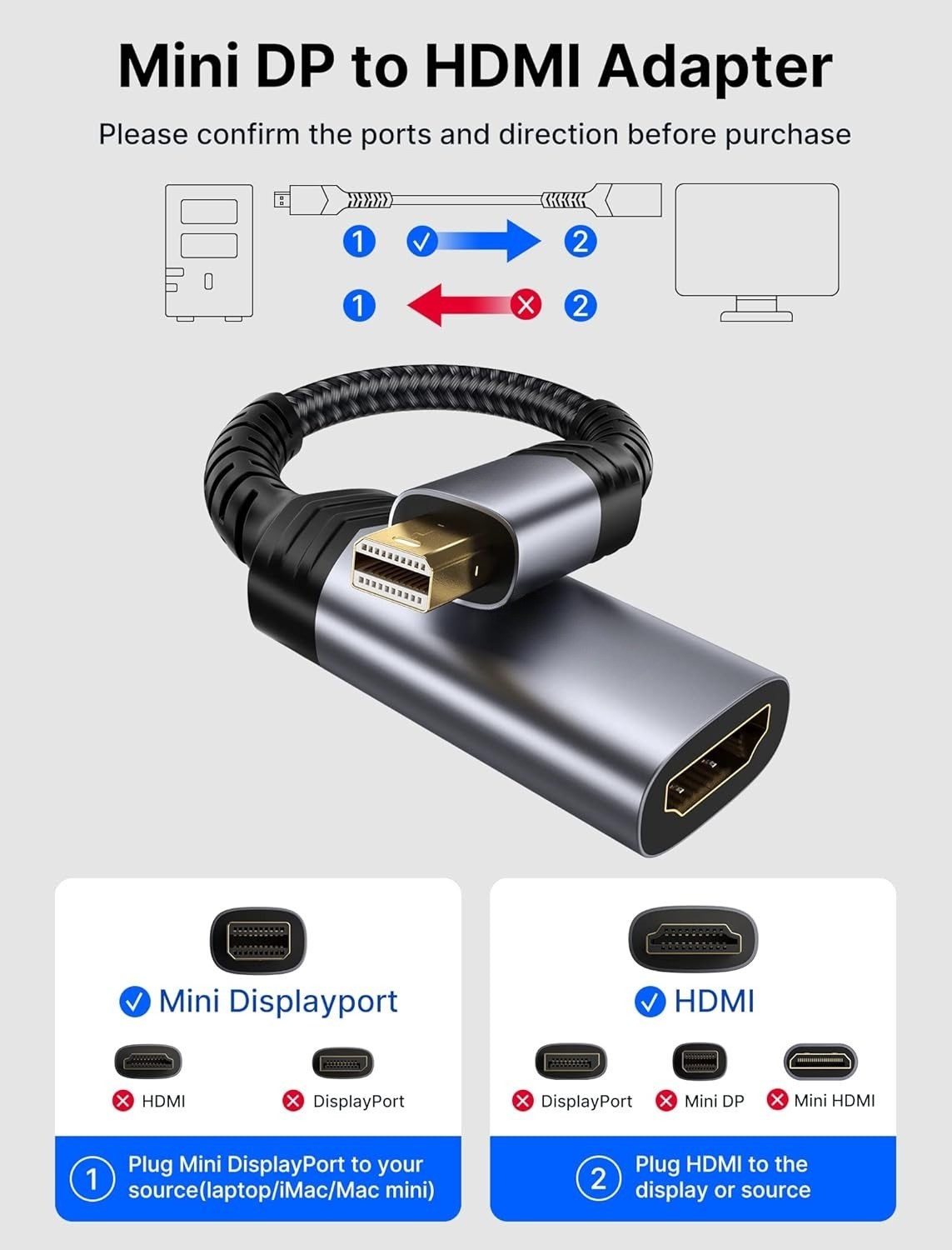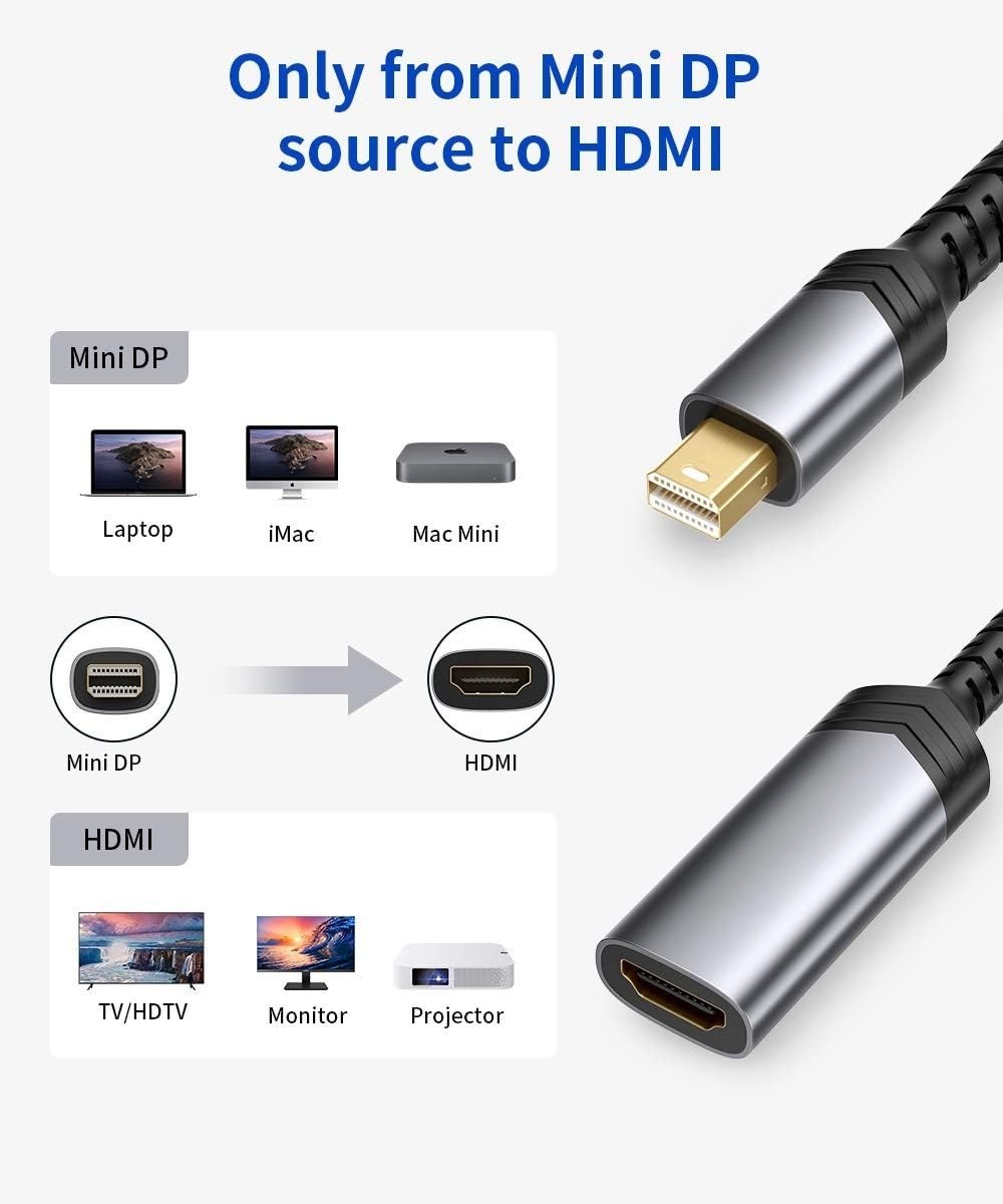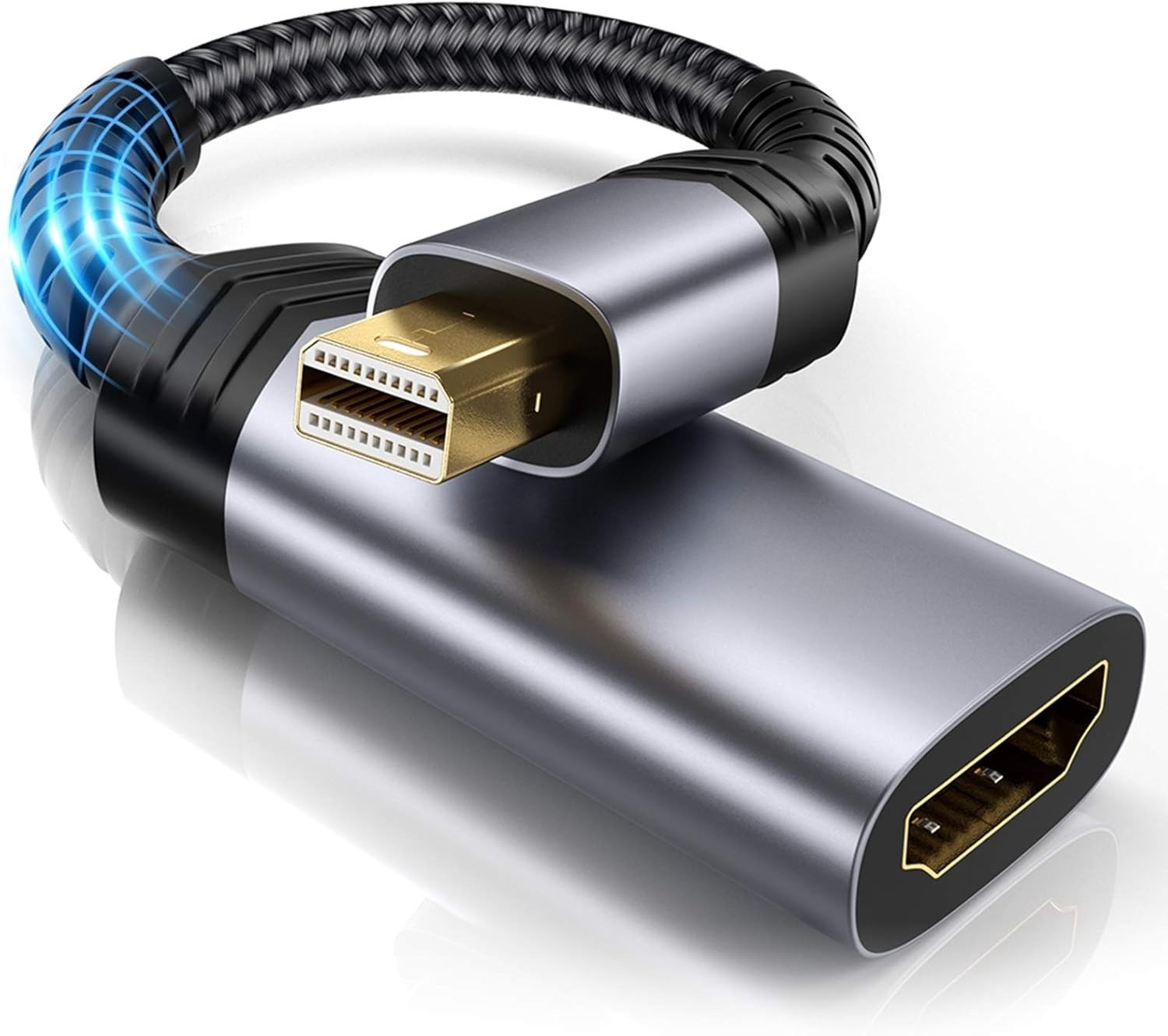 Mini DP (Thunderbolt) to HDMI Adapter Nylon Braided Aluminum Shell Compatible with MacBook Air/Pro, Microsoft Surface Pro/Dock, Monitor, Projector and More