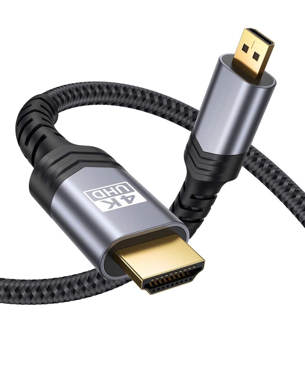 Micro HDMI Male to HDMI Male Cable Adapter Nylon Braided Support 4K@60Hz HDR 3D ARC 18Gbps Compatible with Sport Camera, Sony A6000 A6300 and More