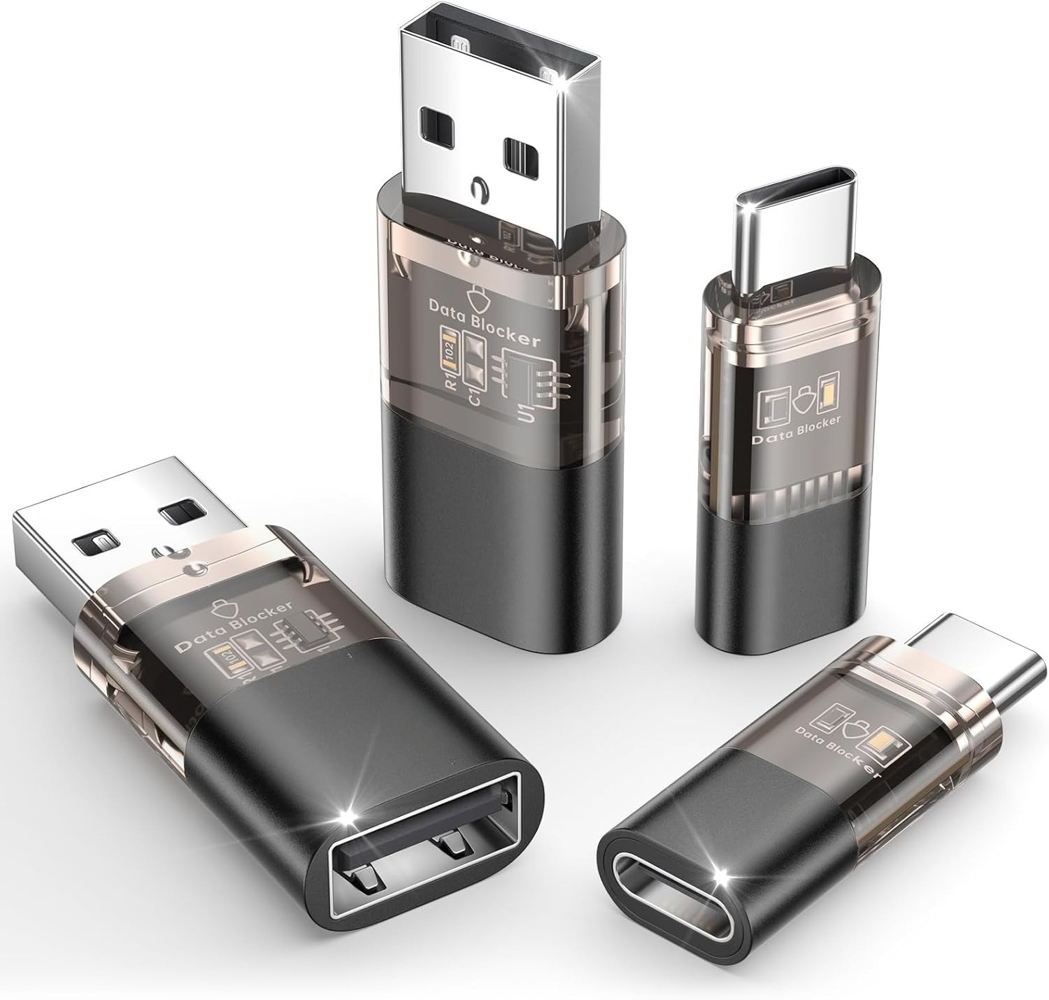 Transparent Type A & Type C Data Blocker Only for Charge, Protect Against Juice Jacking, Refuse Hacking Provide Safe Charging