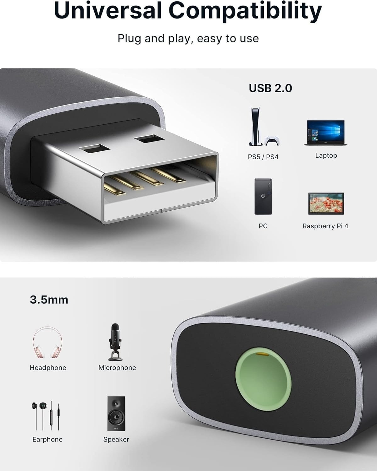 Plug and Play:No drivers or apps required, just easily plug and play.The USB to 3.5mm port will be automatically recognized by system in seconds. No driver download required, USB bus-powered, no external power required. Easily be carried in a pocket to the office, conference room or at home. Note: Microphone functionality of Apple EarPods Headphones with 3.5mm Plug is not supported.