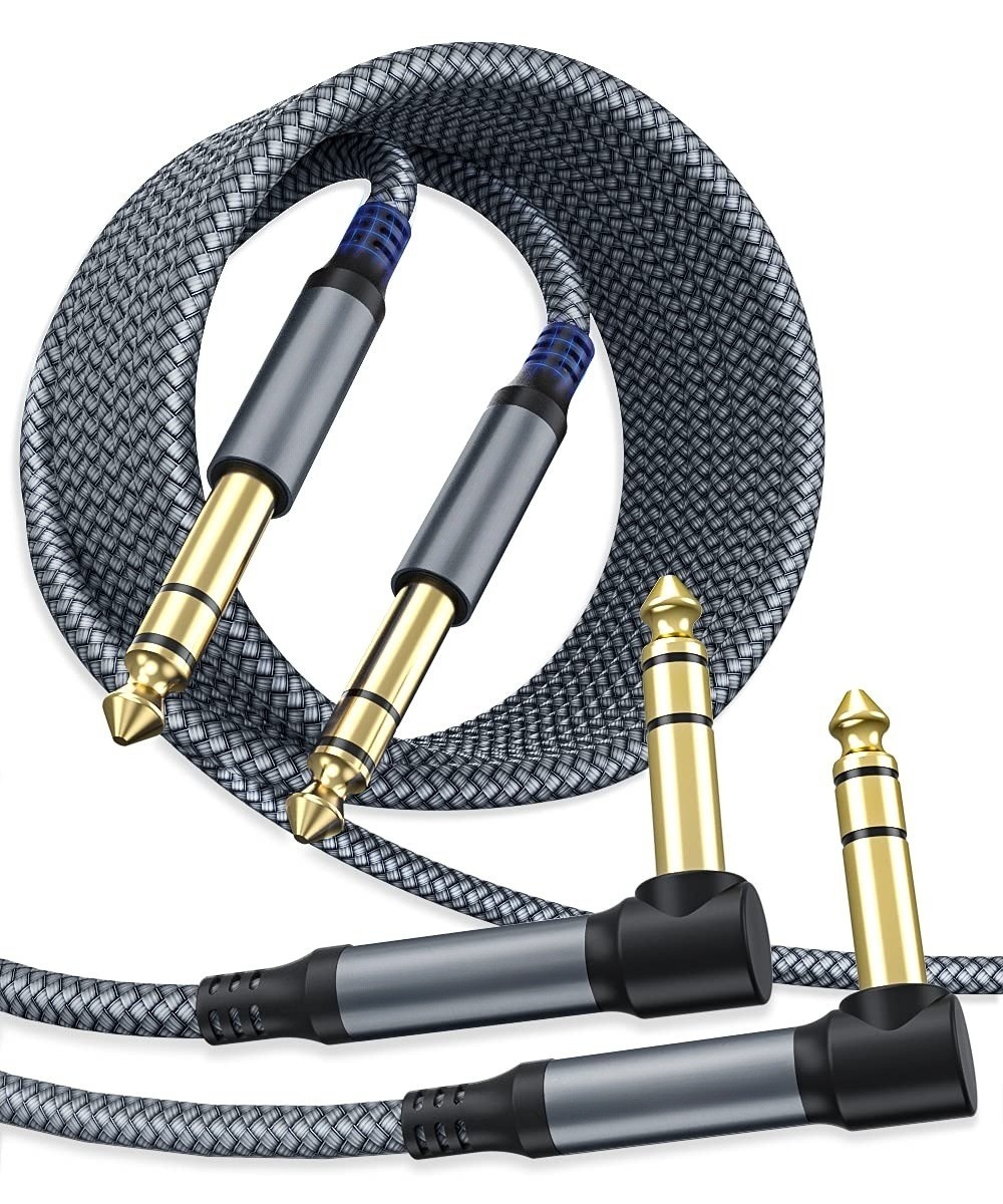 1/4 Inch Cable TRS Guitar Cable, Instrument Cable Guitar AMP Cord Straight to Right Angle 6.35mm Male to Male Stereo Audio Cable for Electric Guitar, Bass, Amplifier, etc.