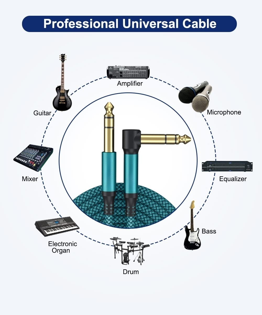 Wide Compatible: Our instrument cable to use as electric guitar cord or amp cable with other instruments, such as electric guitar, Mandolin, amplifiers(amp), Bass, drum, pedal, speaker, mixer, tuner, microphone(mic), keyboard and more