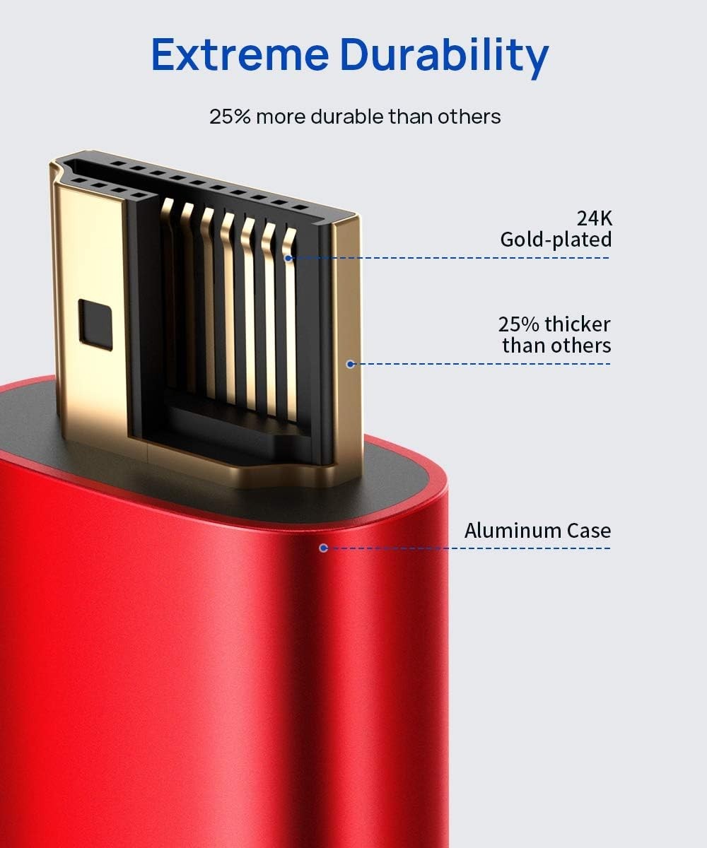 Incredibly Reliable: Nylon braided cable with reinforced SR design not only stay tangle-free but also can withstand 20000+ bending test. Aluminum alloy casing with the 24K gold-plated connectors ensures a longer lifespan.