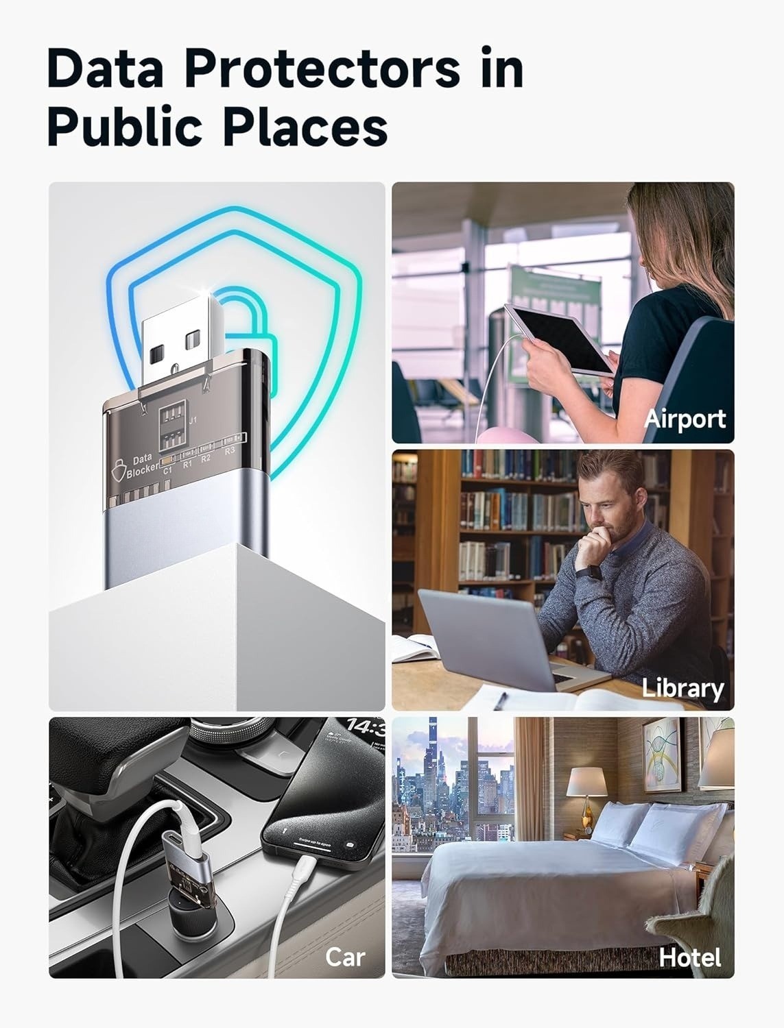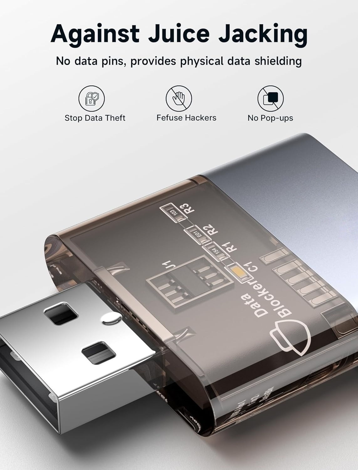 Compact and Portable: Our usb data blocker is small and lightweight. You can slip it into your pocket, bag or keychain and easily take it anywhere. Perfect for people on the go or those who use public charging stations at airports, hotels, etc. Designed with a transparent case for a more visual look and feel.